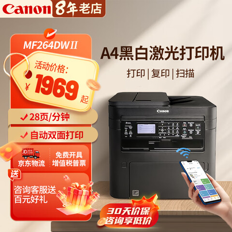 佳能MF264dwⅡ/ICMF463dw无线黑白激光打印/复印/扫描自动双面打印商用办公一体机打印机MF264dwⅡ【28页/分钟】官方标配