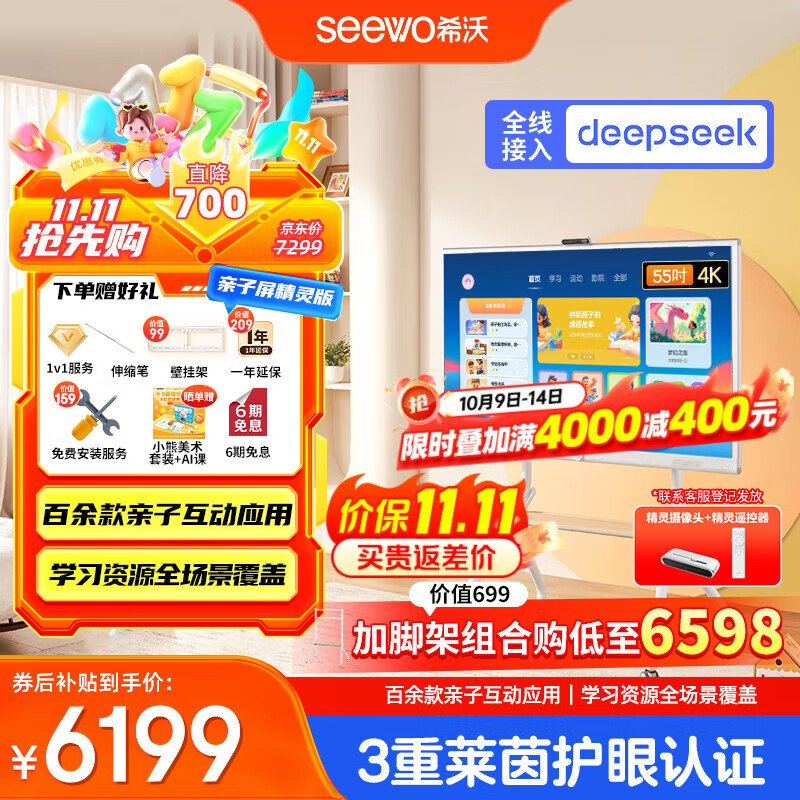 希沃家庭护眼亲子屏 55英寸护眼触控屏大屏 家庭运动4K超清 AI互动智慧屏亲子一体机 闺蜜机【标准版】 亲子屏-精灵版 8+128G