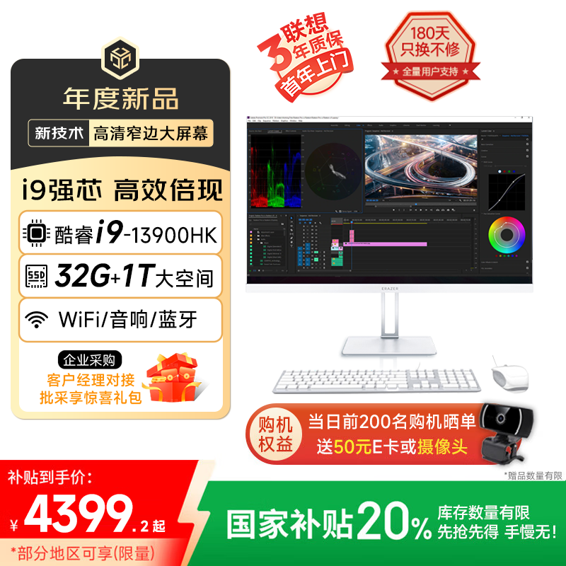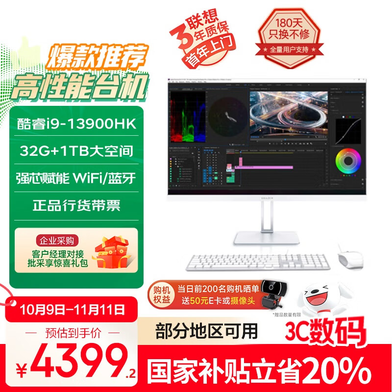 异能者 联想生态S27 27英寸高性能电脑台式一体机办公(酷睿i9-13900HK 32G 1TWiFi蓝牙 白色)国家补贴20%
