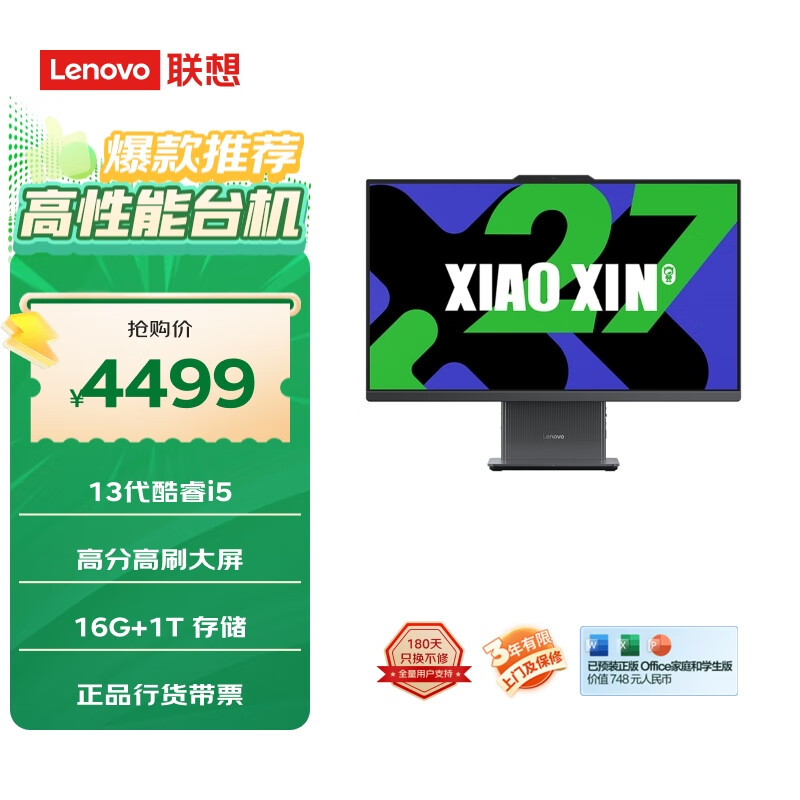 联想(Lenovo)小新一体台式机电脑27英寸(酷睿13代i5-13420H 16G 1TB SSD 摄像头 win11 )深空