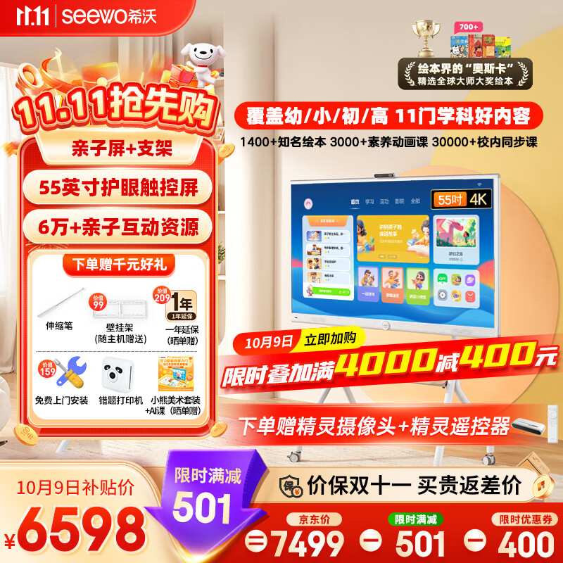 希沃亲子屏 闺蜜机一体机 儿童学生护眼家庭平板学习机 网课运动 移动电视4K 55吋智慧屏【精灵版】