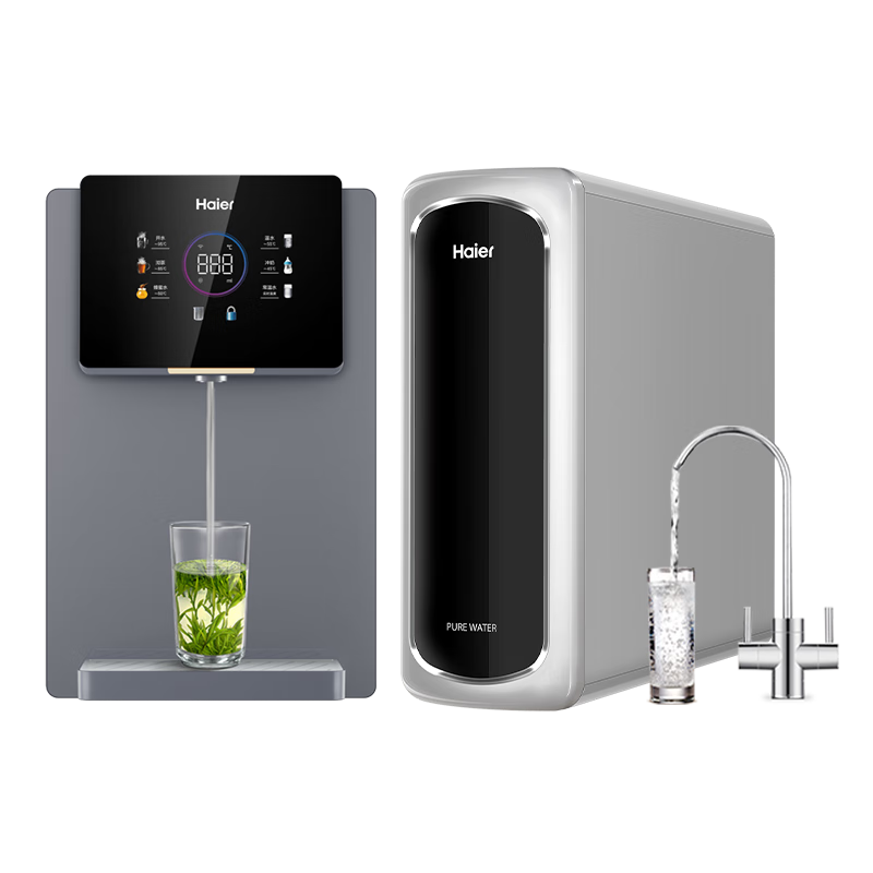 海尔(Haier)新款家用管线机壁挂式速热饮水机净水器伴侣加热直饮一体套装智能触控秒速出水全通量匹配多档温控 净饮两件套【海月Pro净水器+管线机】