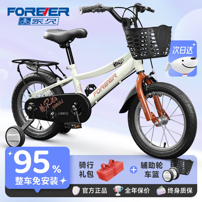 永久(FOREVER)儿童自行车辅助轮平衡小学生男女孩4-6-10岁中大童18寸款脚踏单车