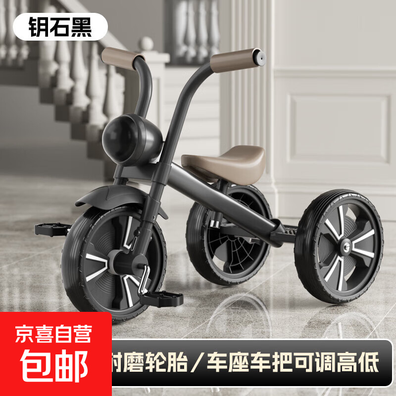 儿童三轮脚踏车宝宝多功能滑行平衡自行车二合一婴儿手推玩具 钥石黑-【加厚防滑耐磨轮胎】