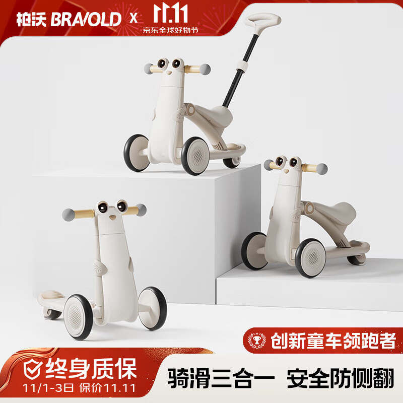 柏沃 BRAVOLD儿童三轮平衡车1-3-5岁宝宝玩具生日周岁见面礼物可手推滑步车