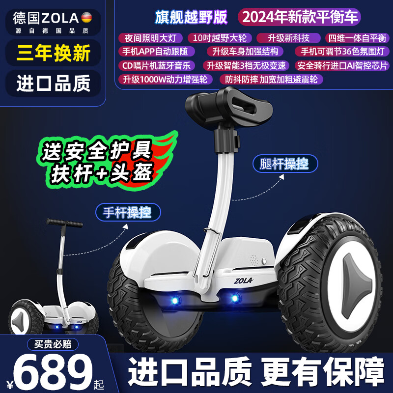 左拉(ZOLA)电动儿童平衡车3-6-12岁智能体感10岁到15岁成人腿控自动平行车 K6越野白54V【三控+APP+避震轮】