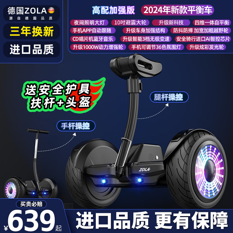 左拉(ZOLA)电动儿童平衡车3-6-12岁智能体感10岁到15岁成人腿控自动平行车 K6旗舰黑54V【三控+APP+炫光轮】