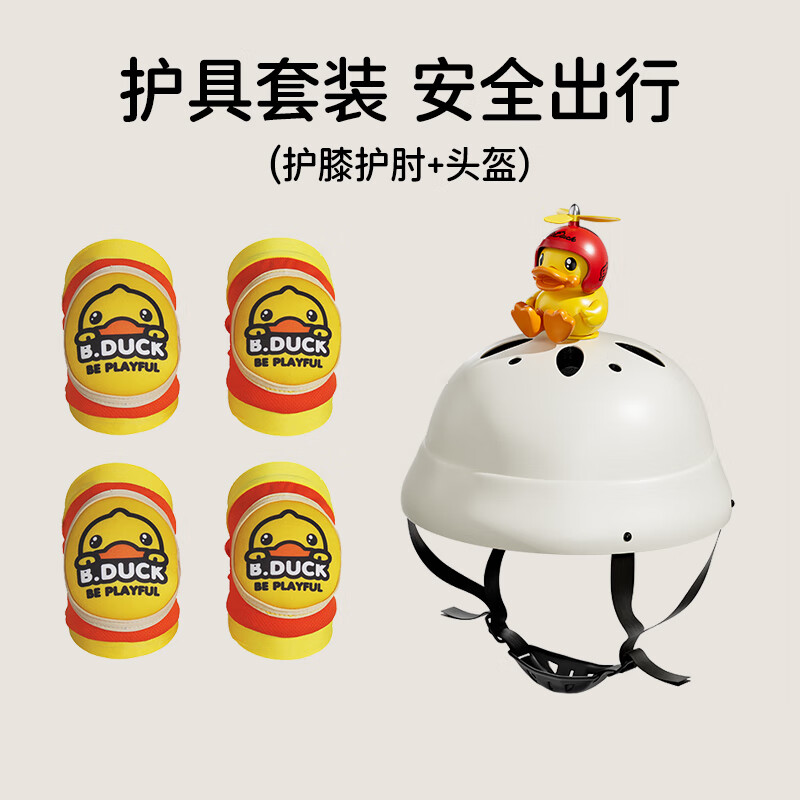 乐的童车儿童头盔护具套装 轮滑溜冰滑板平衡车自行车护具5件套 小黄鸭
