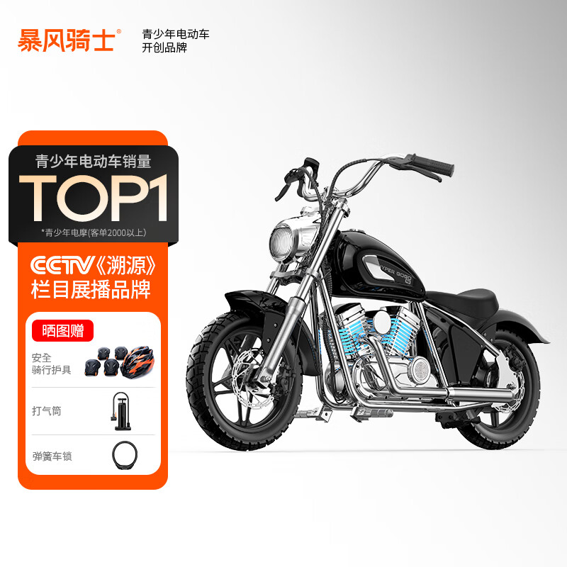 暴风骑士青少年电动车平衡车玩具青少年复古摩托车6-16岁生日礼物M5骑士黑