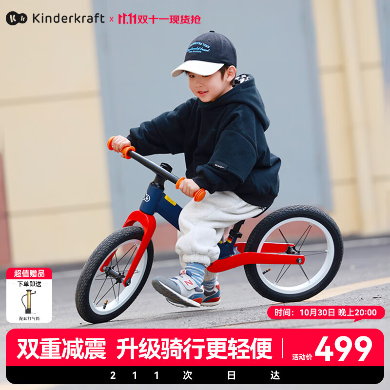 KinderKraftkk儿童平衡车1-3-6岁无脚踏自行车滑步车礼物减震14寸升级赛道红
