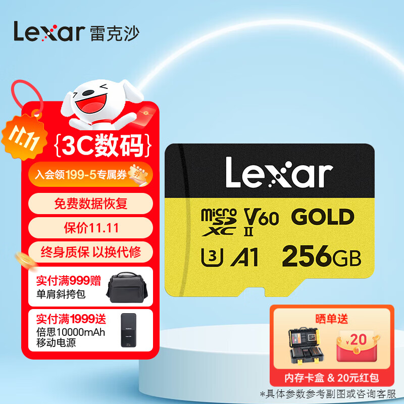 雷克沙(Lexar)tf卡 4K运动相机大疆无人机内存卡gopro手机存储卡MicroSD卡 256G Gold 读280MB 写180MB TF卡