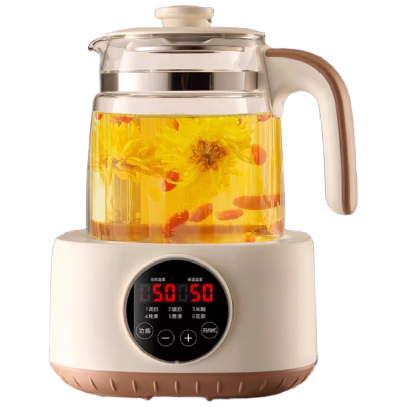 米白色【304底盘】 奥克斯恒温养生壶电热水壶保温家用小型自动煮茶器多功能加厚玻璃