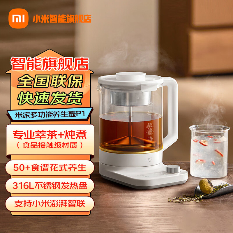 小米 米家 智能多功能养生壶 P1 1.8L 高硼硅玻璃 陶瓷不粘涂层