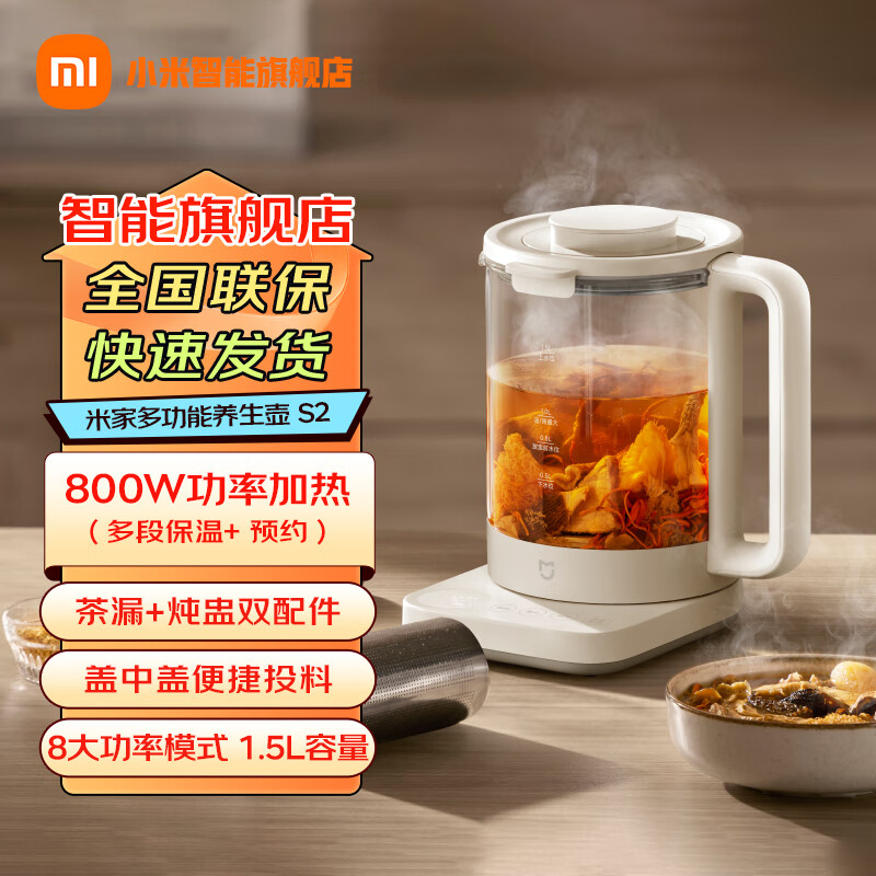 小米(MI)米家多功能养生壶S2家用办公室热水壶烧水壶泡茶壶炖盅+茶漏316L不锈钢茶漏1.5L大容量 米家多功能养生壶S2 1.5L
