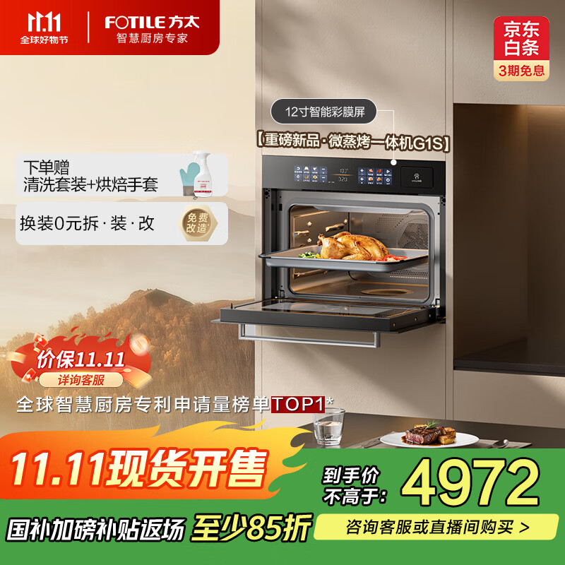 方太(FOTILE)微蒸烤一体机嵌入式 微蒸烤炖炸五合一 九大速烹模式 烤贝果 47L大容量 彩膜屏 蒸烤箱一体机G1S
