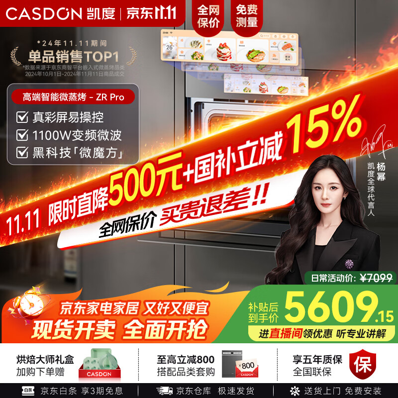 凯度(CASDON)【杨幂代言】双热风 嵌入式微蒸烤一体机SR52FW1-ZRPro 11.26英寸彩屏 微蒸烤炸炖6合1 国家补贴
