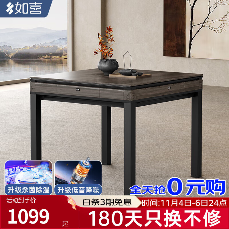 如喜【10万次不卡牌180天换新】麻将机全自动餐桌家两用一体低音电动 02杀菌除湿低音机乌木纹 麻将牌型号大小,请联系客服