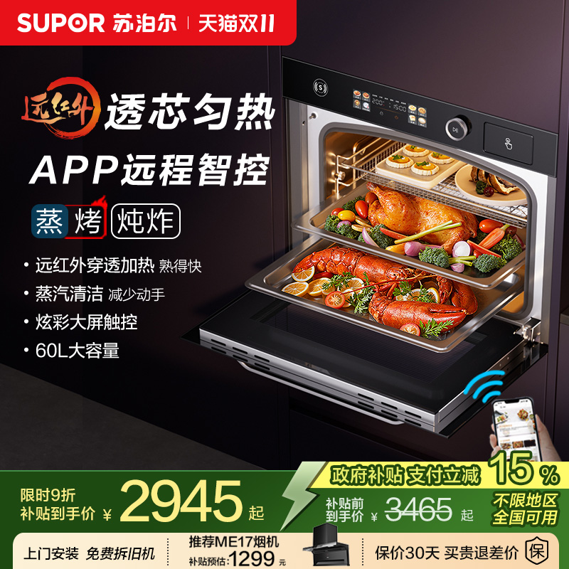 黑色 苏泊尔MY78远红外嵌入式蒸烤一体机蒸烤炸炖家用大容量电蒸烤箱