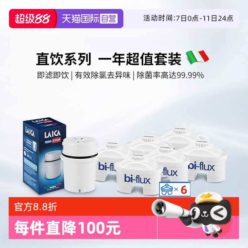 直饮年套【除氯升级滤芯*6+超滤芯DUF*1】 【自营】LAICA莱卡滤芯6只家用自来水过滤壶DUF直饮1年套装净水器