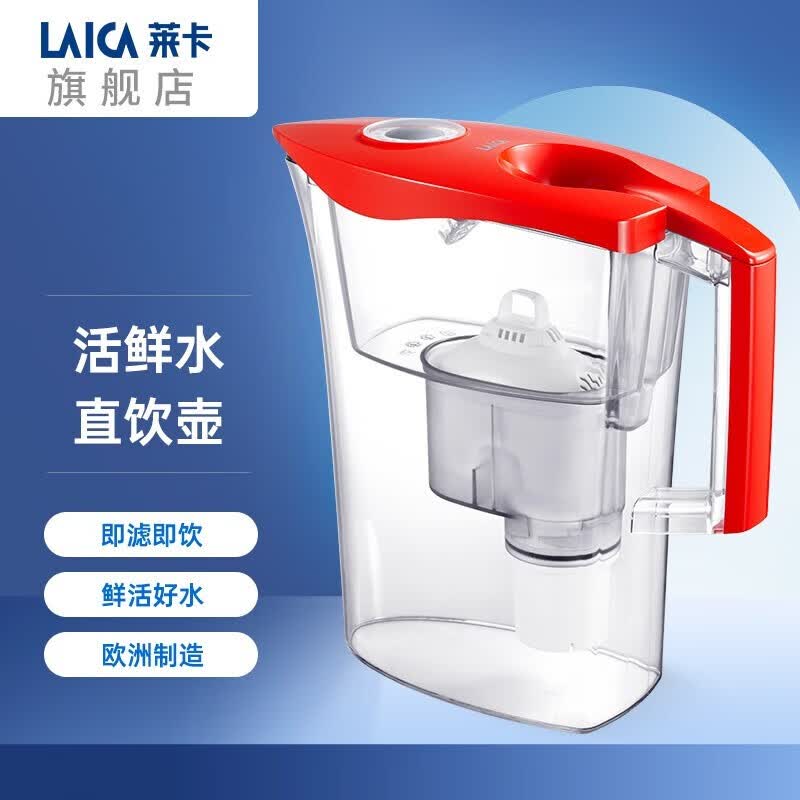 莱卡(LAICA)意大利净水壶 家用直饮滤水壶 过滤净水器 自来水过滤器 3.1L大容量 红色/蓝色1壶2芯【过滤直饮】
