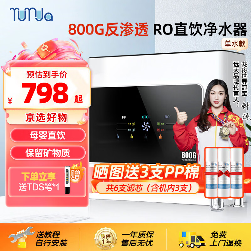 远大健科rurua净水器大通量RO反渗透家用无罐厨下式直饮机配通用滤芯纯水机600g800g 【升级】800G(单水 自行安装)