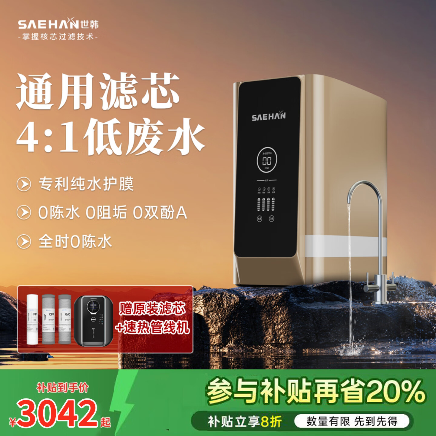 世韩(SAEHAN) 4:1微废水纯水护膜S8家用净水器厨房直饮800G大通量RO反渗透净水机通用滤芯厨下式纯水机净饮机 金色800G纯水护膜0陈水-净废4:1
