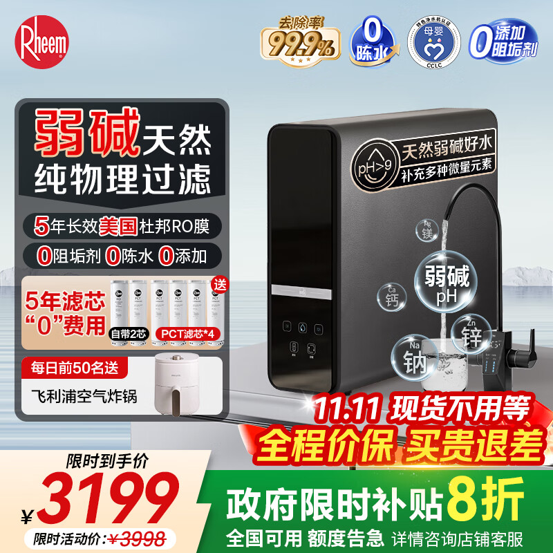 瑞美弱碱性水净水器过滤器1200G电器家电补贴大通量饮水机直饮式RO反渗透母婴直饮机0陈水0阻垢剂 爆款推荐【弱碱性水净水器顶配】