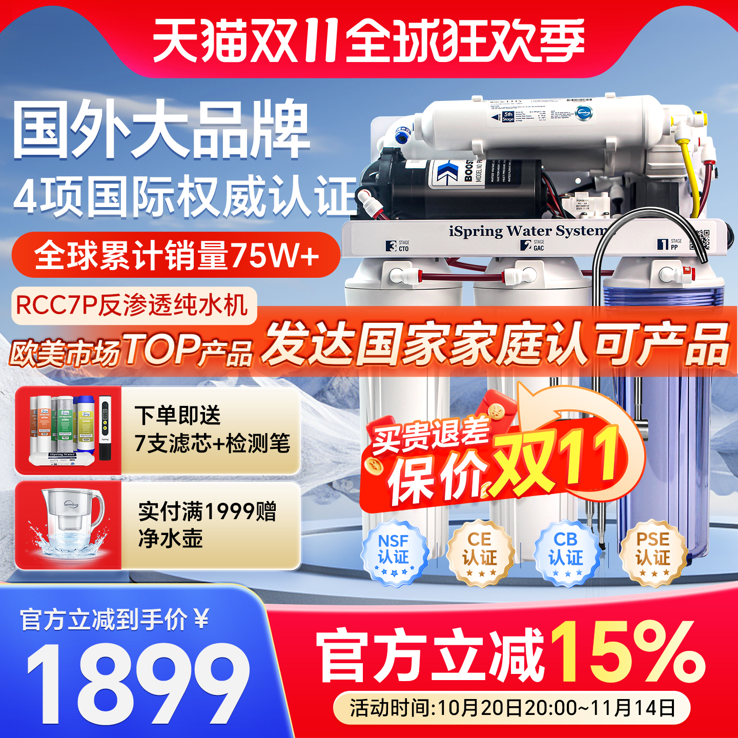iSpring爱诗普霖认证通用滤芯净水器家用厨房直饮纯水机矿物质水