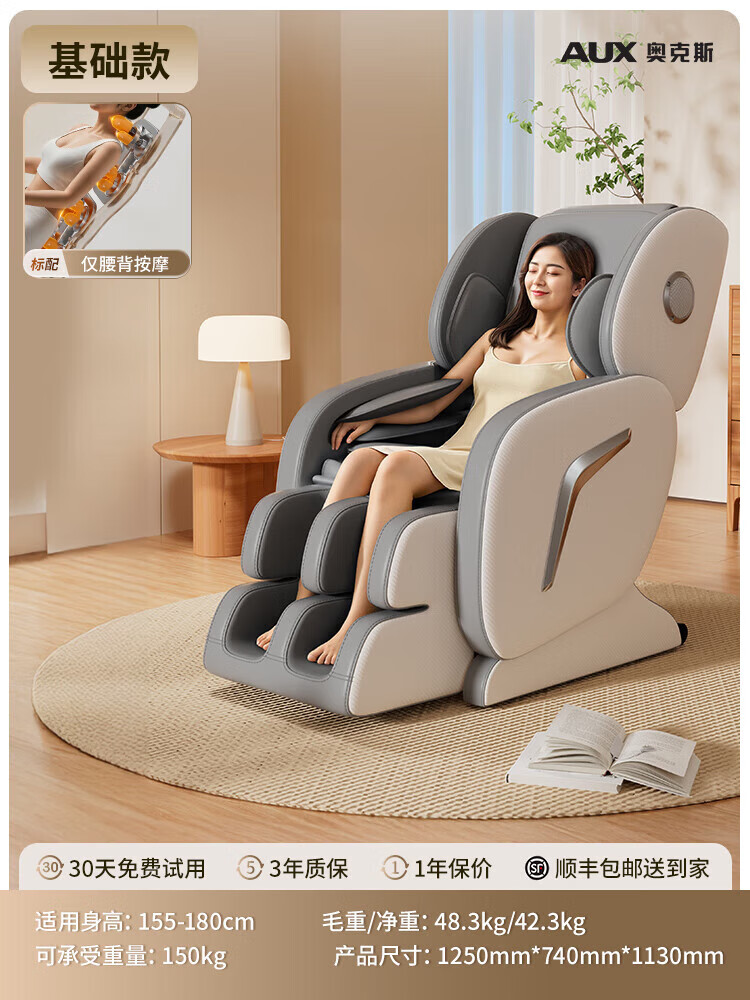 AUX奥克斯按摩椅子全身电自动智能家用小型2025新款老人专用揉捏太空 基础款【仅腰背基础按摩】