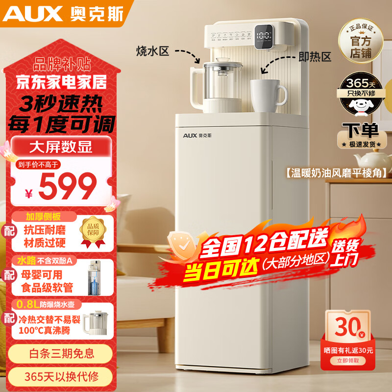 奥克斯即热式茶吧机家用高端饮水机3秒即热下置式客厅办公室烧水一体机 米黄色【烧水即热两用】 即热型