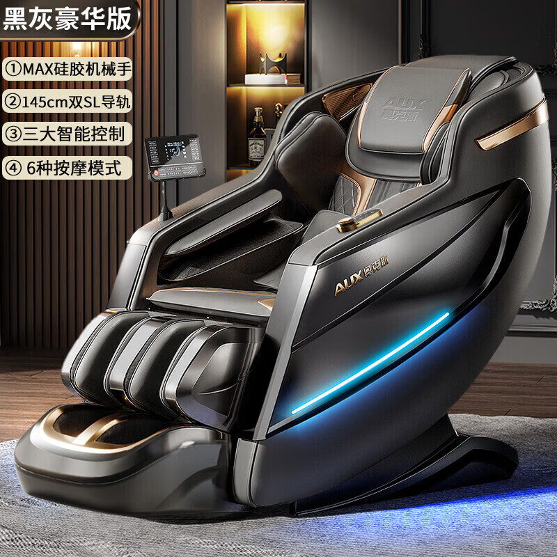 AUX奥克斯新款按摩椅家用全身SL智能电动全自动多功能豪华太空舱 黑灰豪华版【MAX硅胶机械手+全身气囊包裹】