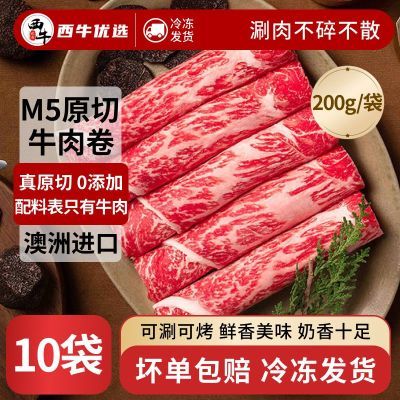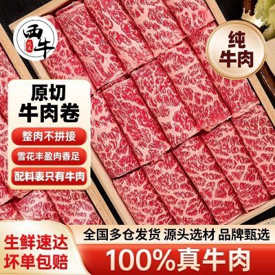 西牛优选澳洲原切雪花牛肉卷4斤谷饲肥肉卷涮火锅食材200g/袋