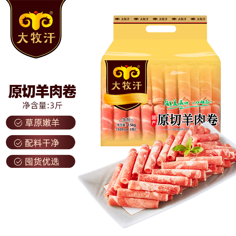 民维大牧汗内蒙原切羊肉卷 精制羊肉片3斤(1斤*3)涮肉火锅食材
