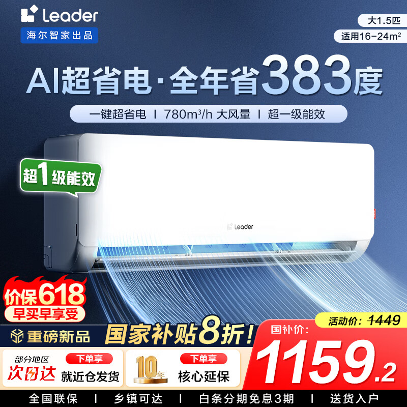 大1.5匹【性价比卷王】超省电 Leader空调海尔智家出品一级挂机