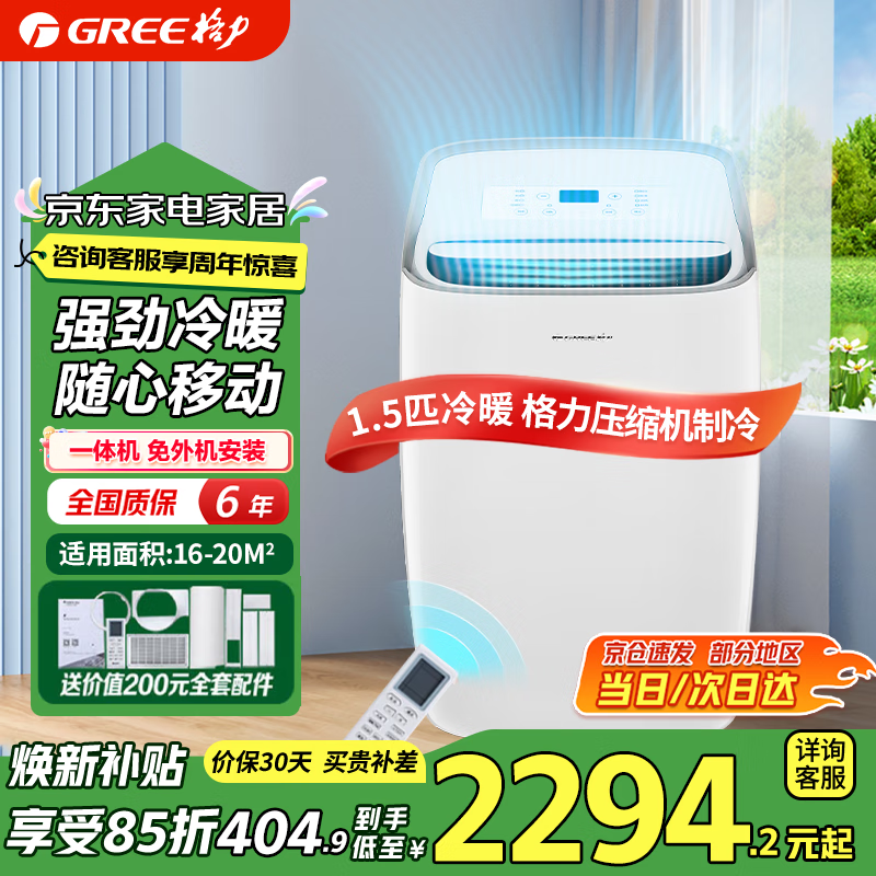 格力(GREE)移动空调冷暖1.5匹 无外机空调一体机可移动便携式除湿立式小空调卧室客厅厨房空调 冷暖/单冷 1.5匹 冷暖 KYR-35/NANA1A