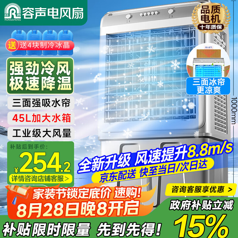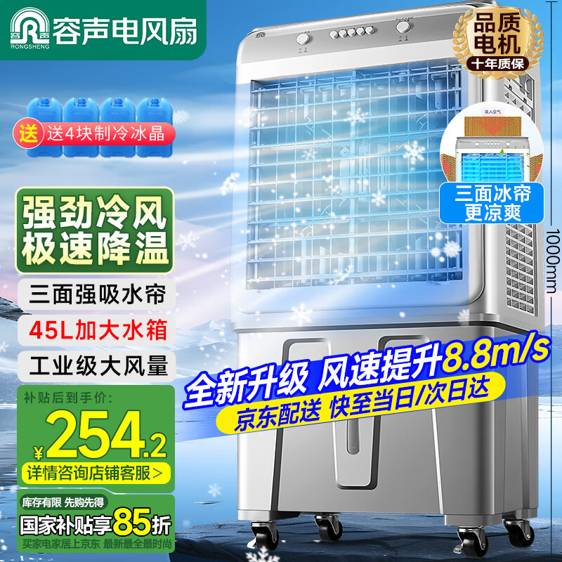 百亿补贴:容声冷风扇家用冷风机冷气扇卧室移动空调扇新塔式水冷风扇制冷机