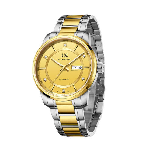 间金钢带款 上海牌全自动机械表40.5mm商务夜光防水国产钻石腕表正品3022