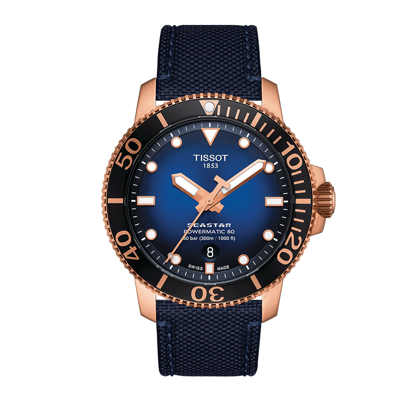 天梭(TISSOT)手表 海星系列男表 瑞士机械男士针织带腕表潜水表生日礼物