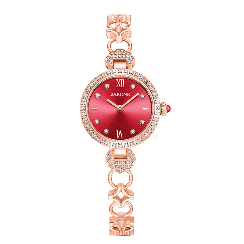 雷诺(RARONE)定制刻字 手表 手链式如意腕表石英手表 生日礼物送女友老婆闺蜜 中国红限定如意手链礼盒款