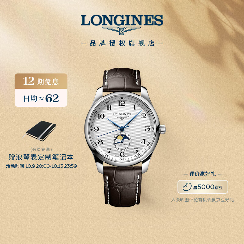 浪琴(LONGINES)瑞士手表 名匠系列月相腕表 月相机械皮带男表L29194783