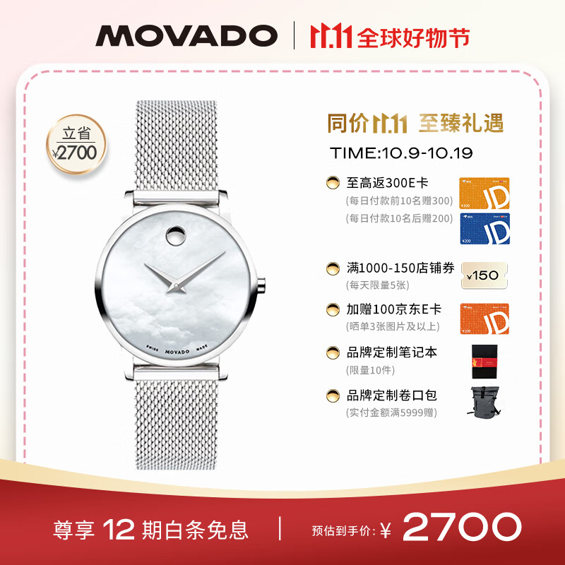 摩凡陀(Movado)瑞士手表博物馆系列腕表石英钢带女表0607350瑞表礼物送礼