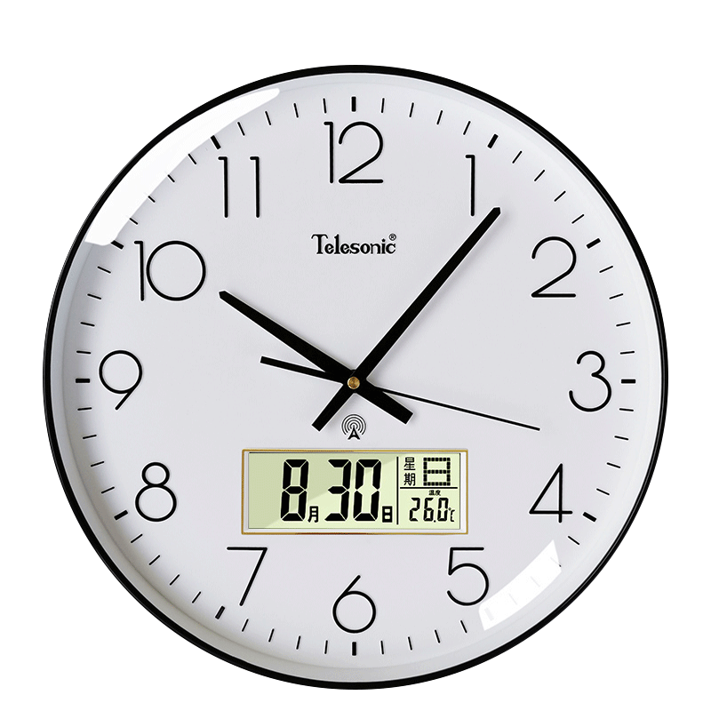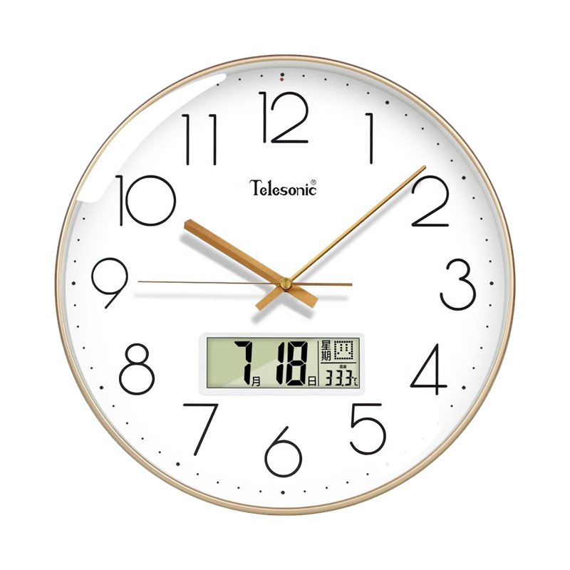 天王星(Telesonic)挂钟客厅钟表家用自动对时钟万年历温度挂表挂墙免打孔电波钟36cm