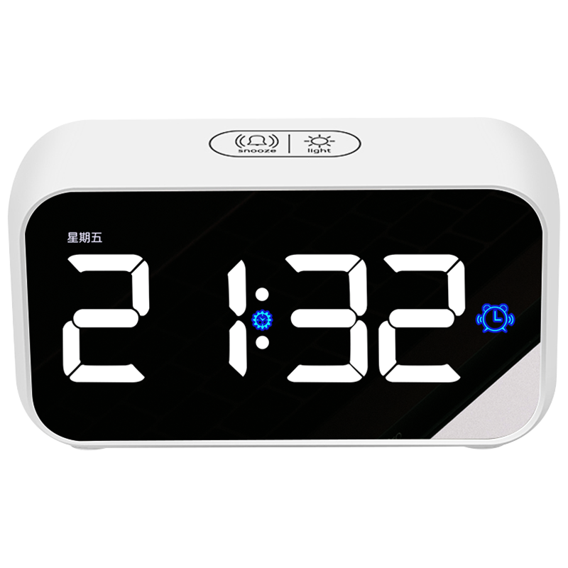 天王星天王星智能学生电子闹钟LED镜面夜光床头钟音乐闹表台钟 白色