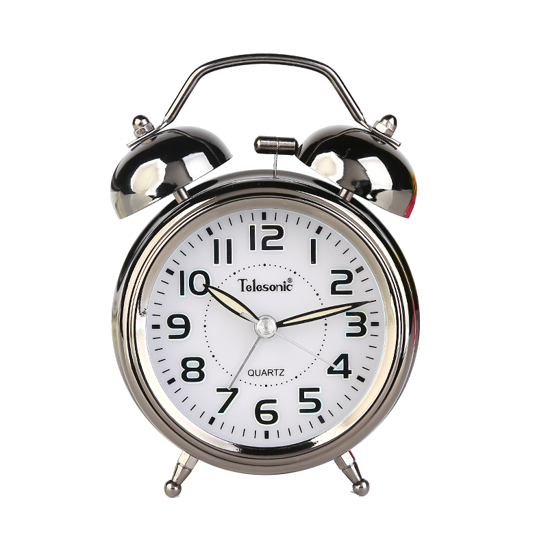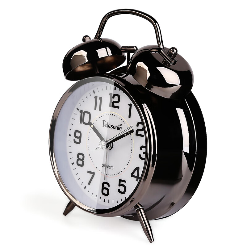 天王星(Telesonic)闹钟创意学生儿童大铃声闹表卧室床头简约夜光扫秒机芯传统时钟开学季礼物