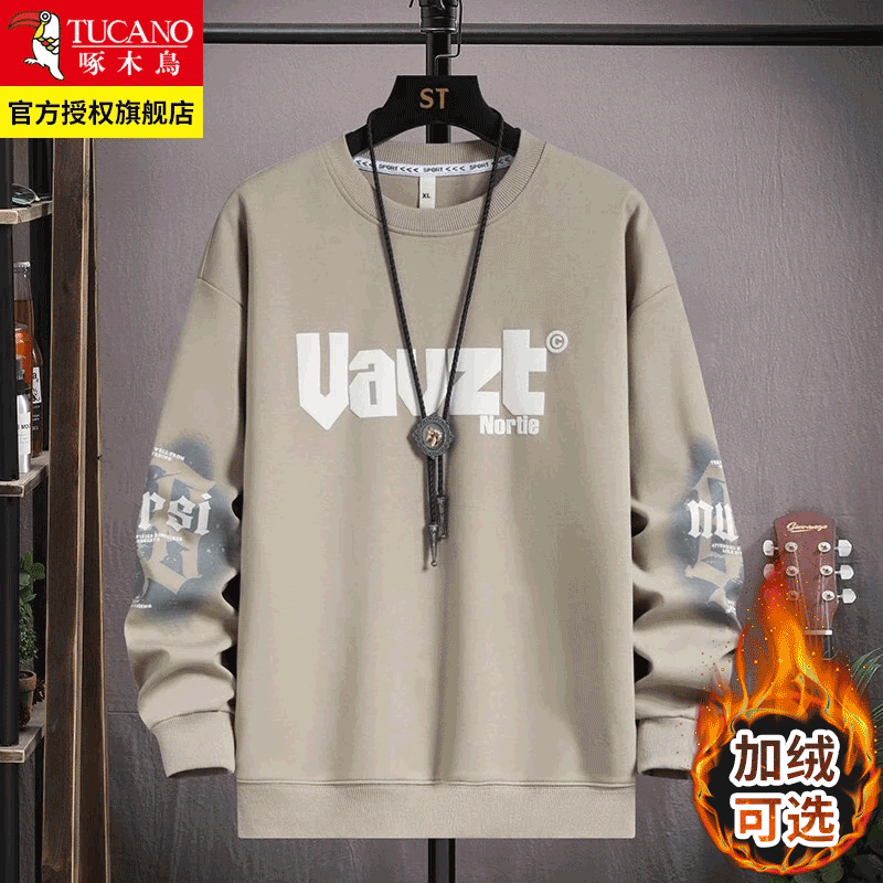 百亿补贴:啄木鸟青少年长袖T恤男生秋冬季体恤卫衣运动套装初中高中生加绒打底衫 6815卡其色【常规】 XL 120-140斤