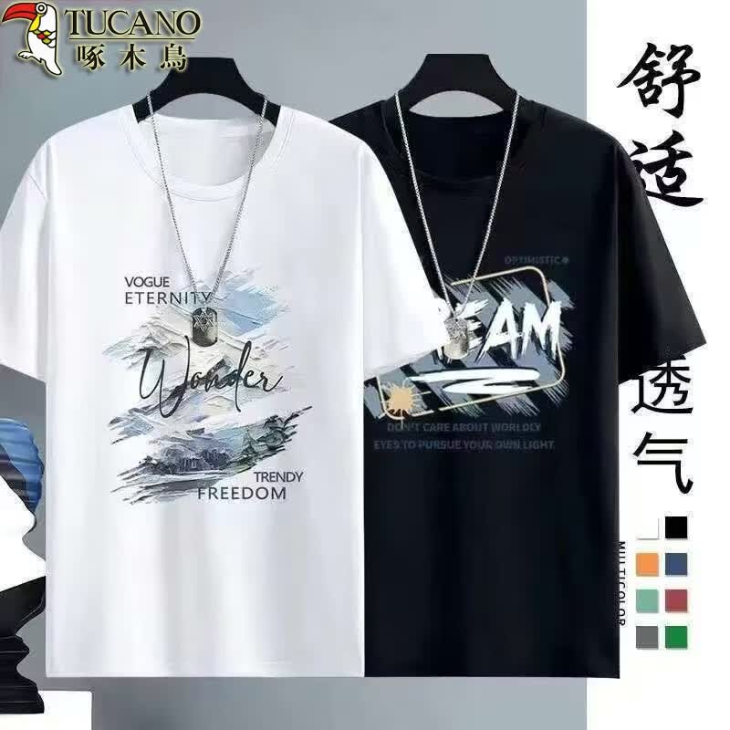 啄木鸟【2件装】纯棉短袖T恤男夏季宽松运动t恤衫青少年休闲半袖上衣服 雪山白色+DR黑色 XL
