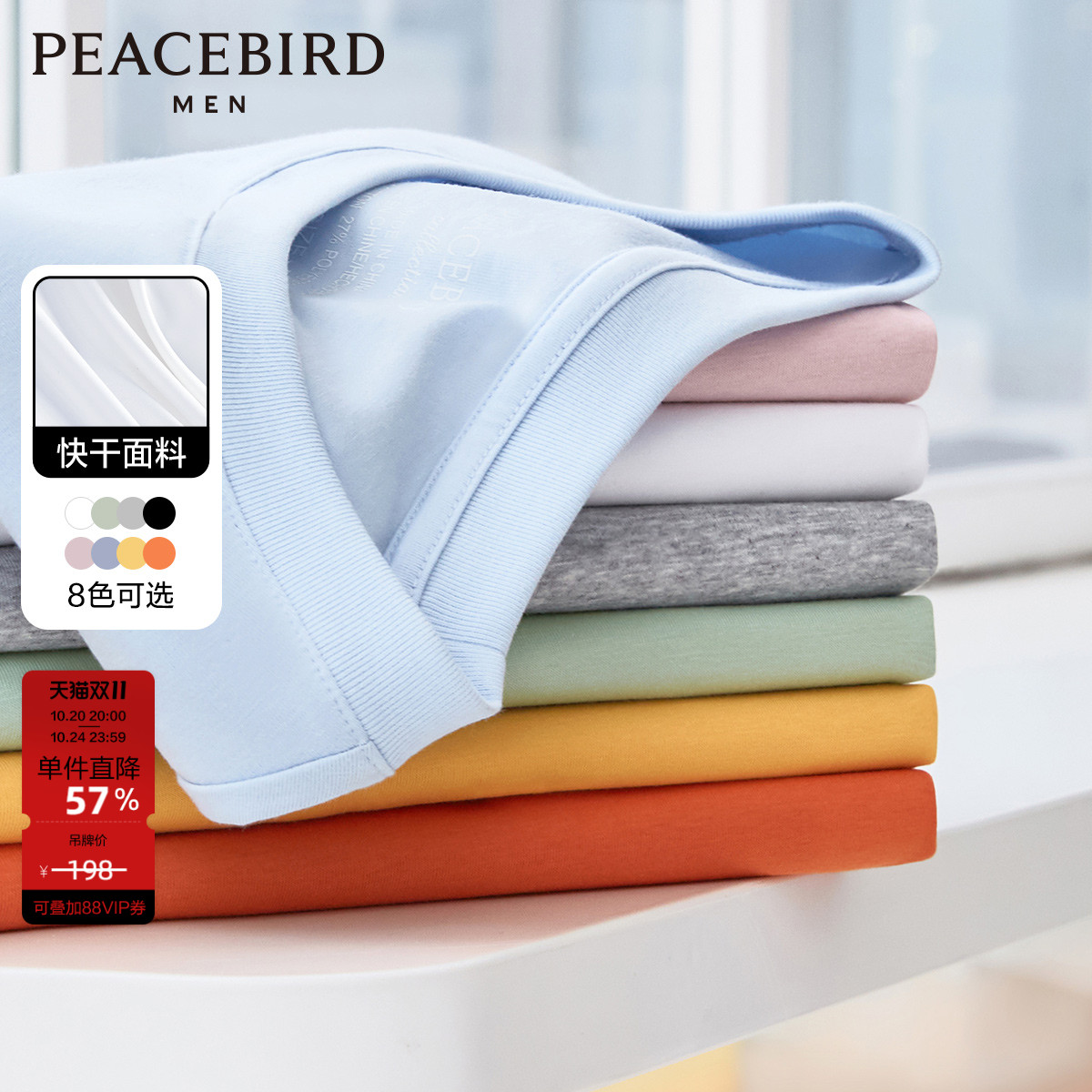 太平鸟男装 夏短袖T恤干爽面料情侣时尚运动服纯色体恤打底衫潮S