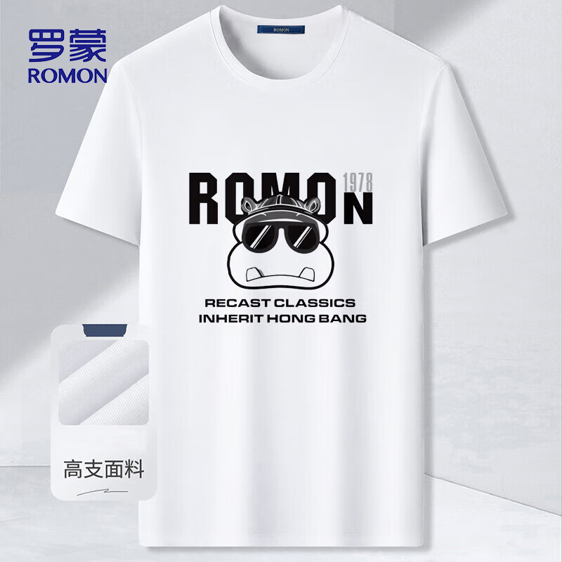 罗蒙(ROMON)T恤男夏季潮流冰丝感短袖打底衫运动休闲上衣男装LP006白XL