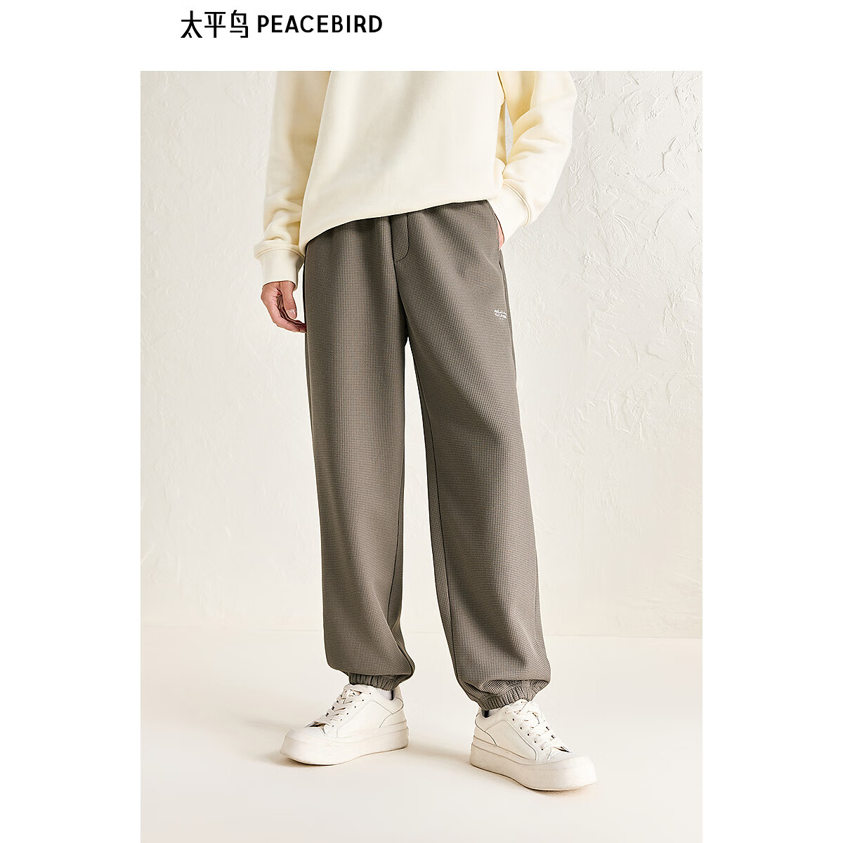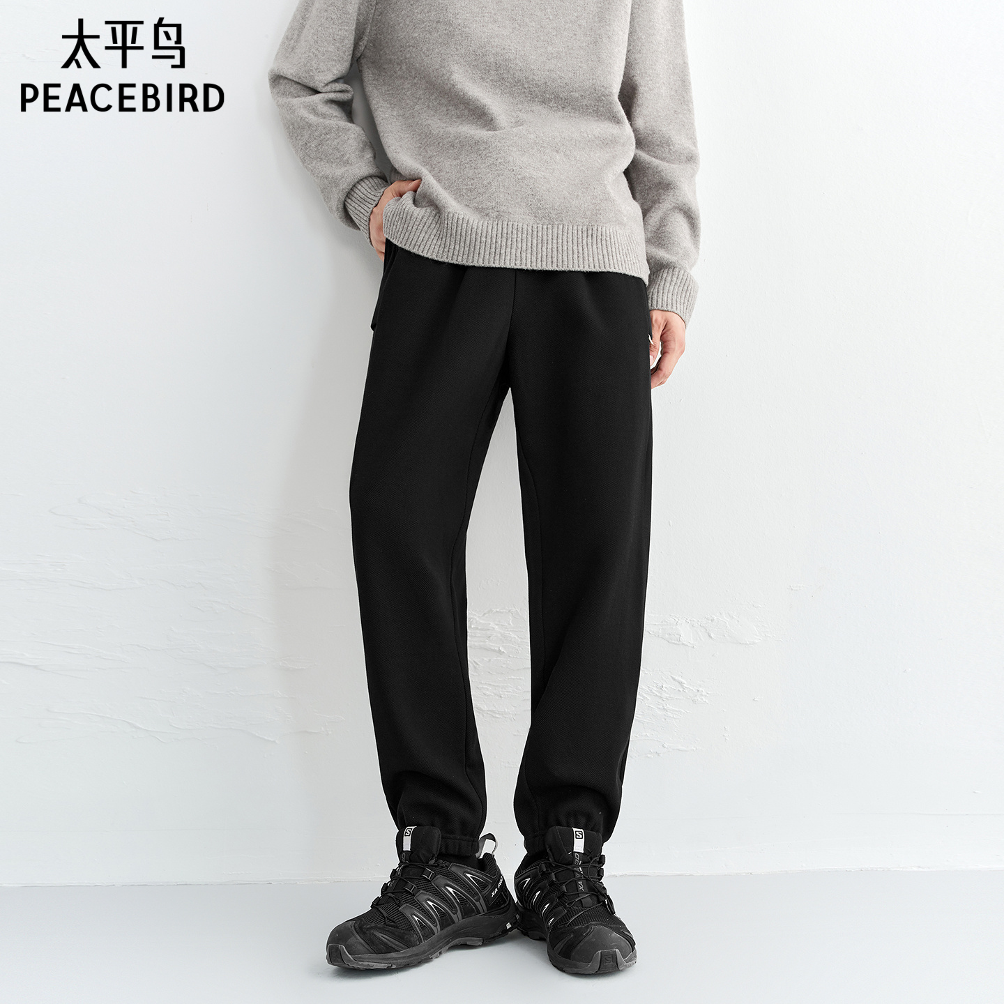 【内里加绒】太平鸟男装休闲裤25冬季新款宽松直筒运动缝标卫裤潮