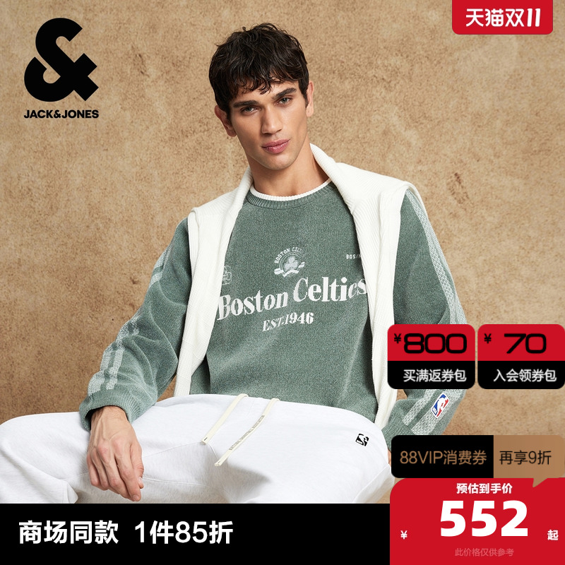E60橄榄绿灰 165/88A/XS 杰克琼斯NBA联名凯尔特人队2025年新款男装冬季毛衣针织衫运动风
